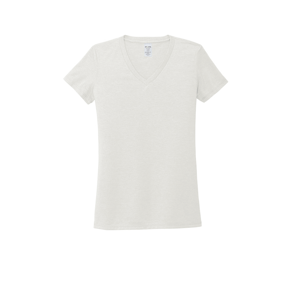 Add screen print to the Allmade Women's Fairly White Tri-Blend V-Neck Tee for a sustainable clothing option that is eco-friendly and great to wear. The crazy-soft sustainable tee is made from recycled materials with a V-neck design that is flattering and loose fitting. The rib knit neck is perfect for layering or wearing alone with a custom logo that will get your noticed. Perfect for employee apparel with a company logo or as a custom gift to those you appreciate the most in life.