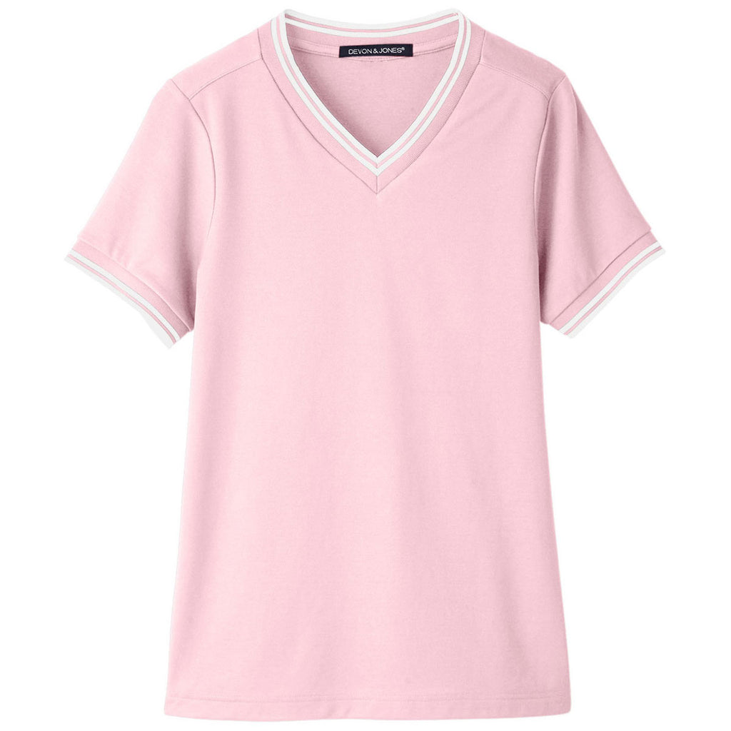 Devon & Jones Women's Pink/White CrownLux Performance Plaited Tipped V-Neck Polo