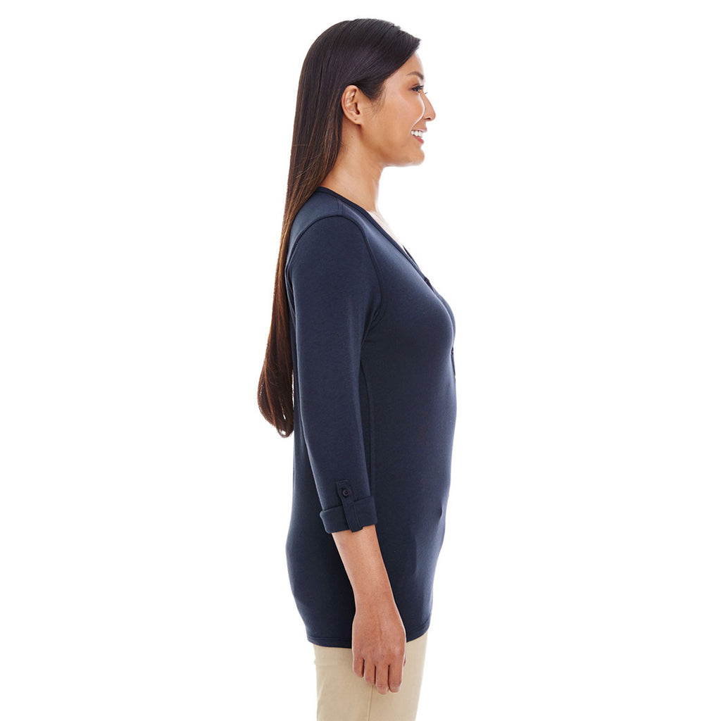 Devon & Jones Women's Navy Perfect Fit Y-Placket Convertible Sleeve Knit Top