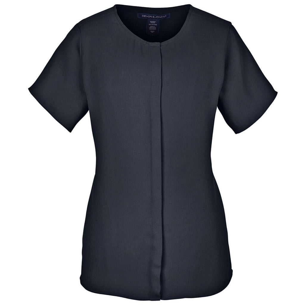 Devon & Jones Women's Black Perfect Fit Short-Sleeve Crepe Blouse