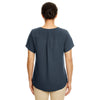 Add embroidery to the Devon & Jones Wome Navy Perfect Fit Short-Sleeve Crepe Blouse for corporate apparel that is fun to wear. This simple, 100% polyester crepe blouse is stylish, yet simple so it can be easily layered or worn alone as needed. In button up style, the buttons are incorporated in a hidden center front placket. Created with the flattering "perfect fit" with side slits, you can add a company logo to use for an employee event in which your workers need to be recognizable or a custom logo to add to your logoed apparel line.Highlights