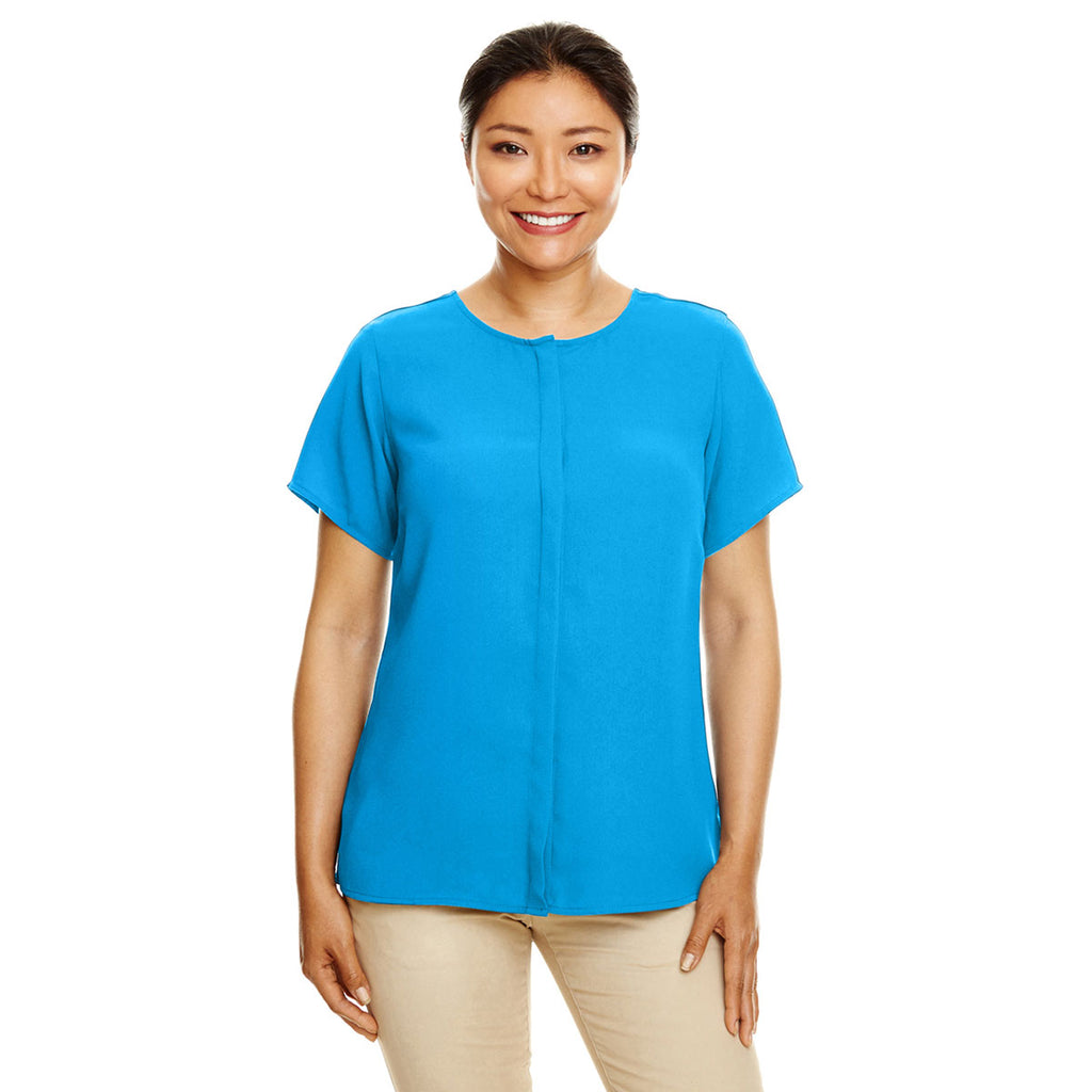 Devon & Jones Women's Ocean Blue Perfect Fit Short-Sleeve Crepe Blouse