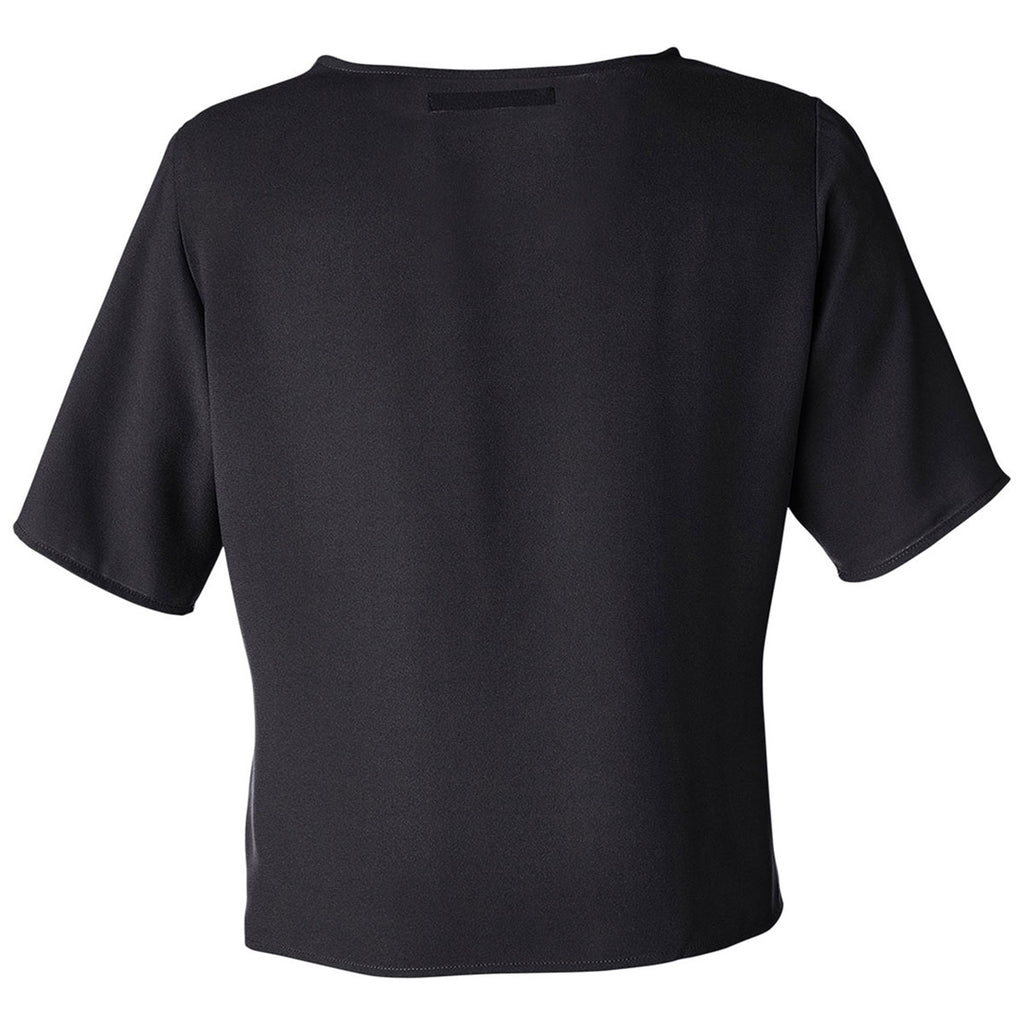 Add custom embroidery to the Devon & Jones Wome Black Perfect Fit Tie-Front Blouse for a look that is both fun and fashionable. A slight throwback with an updated approach, this blouse will get you noticed. Made of lightweight polyester crepe with a feminine scoop neckline, the tie-front detail at the center front hem makes this a true must have. Choose a company logo to use these as employee apparel or gifts that show creativity.Highlights