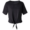 - Tie-front detail at center front hem