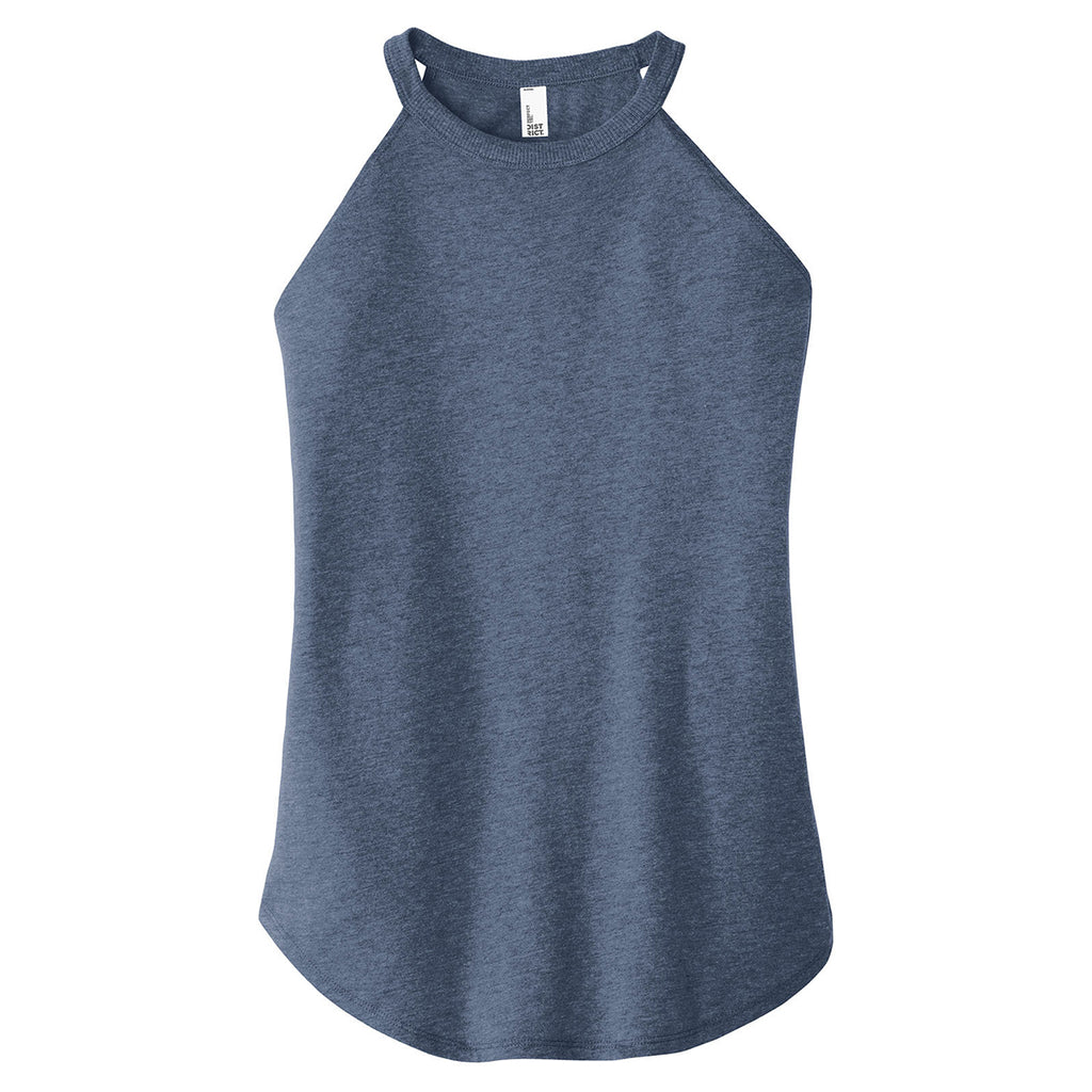 Switch up your usual custom gear by wearing the logoed District Women's Navy Frost Perfect Tri Rocker Tank. Rib knit at the neck makes the tank perfect as a stylish corporate apparel addition for the big race. Attach your company logo on the front to turn the boldly designed tank into a marketing machine. Polyester and rayon combine to resist the types of rips and tears that send other styles of tanks to the trash bin. Great for layering under a sweater or jacket. This tank can be dressed up or down for any occasion.Highlights