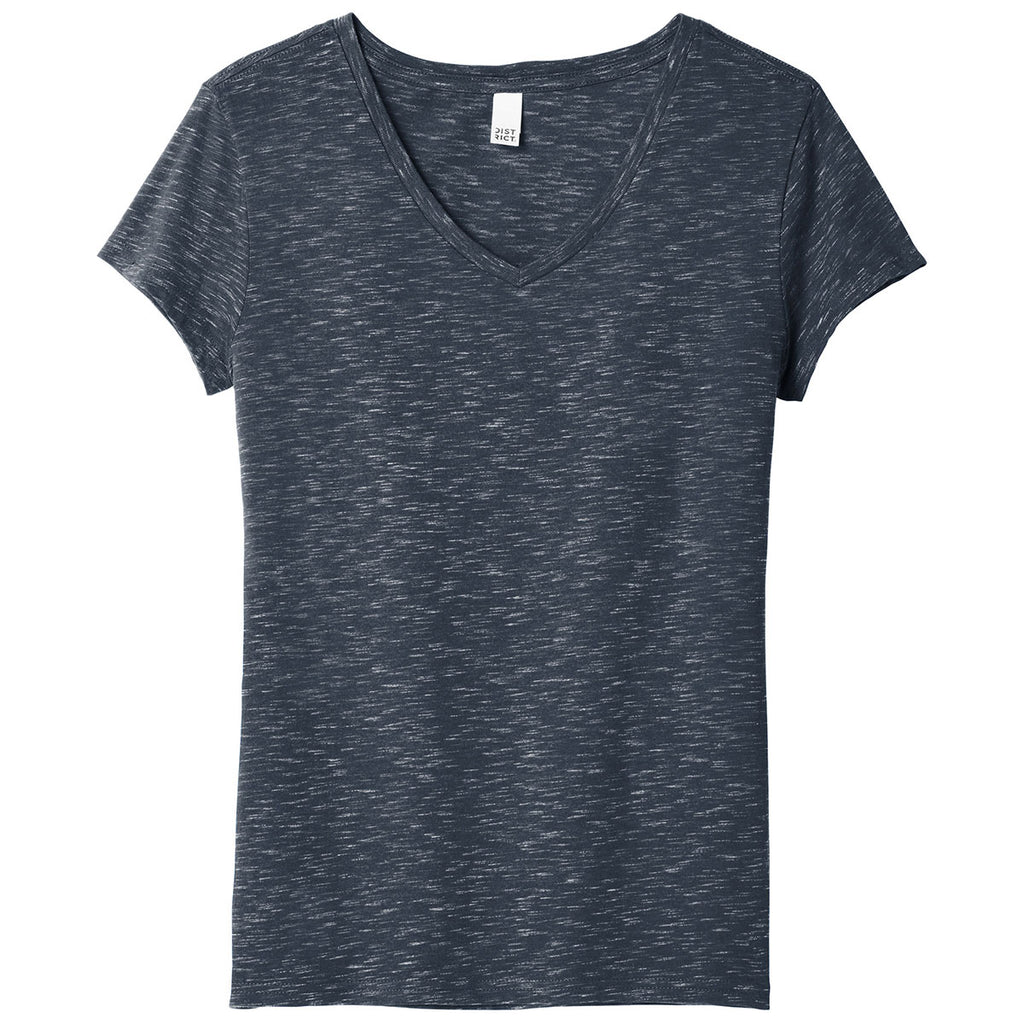 With a relaxed fit that blends in seamlessly at company casual social events, the screen printed District Women's New Navy Medal V-Neck Tee is an excellent addition to new employee gift bags. Shoulder to shoulder taping produces a structured look that withstands the pounding delivered by active lifestyles. Enjoy the super smooth feel of 90% ring spun cotton, as well as polyester fibers that bind together to resist rips and tears. Wear the tee as an only layer at a picnic and as the first layer of a cool weather fashion ensemble. Attach your corporate logo for getting more exposure at industry trade shows.Corresponding Men's Style: District Men's New Navy Medal Tee