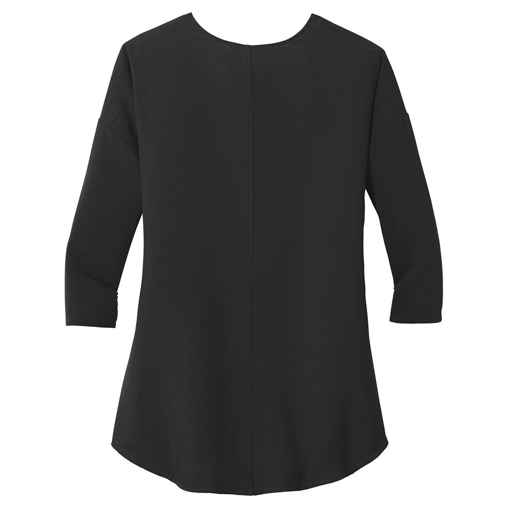 Port Authority Women's Black Concept 3/4-Sleeve Soft Split Neck Top