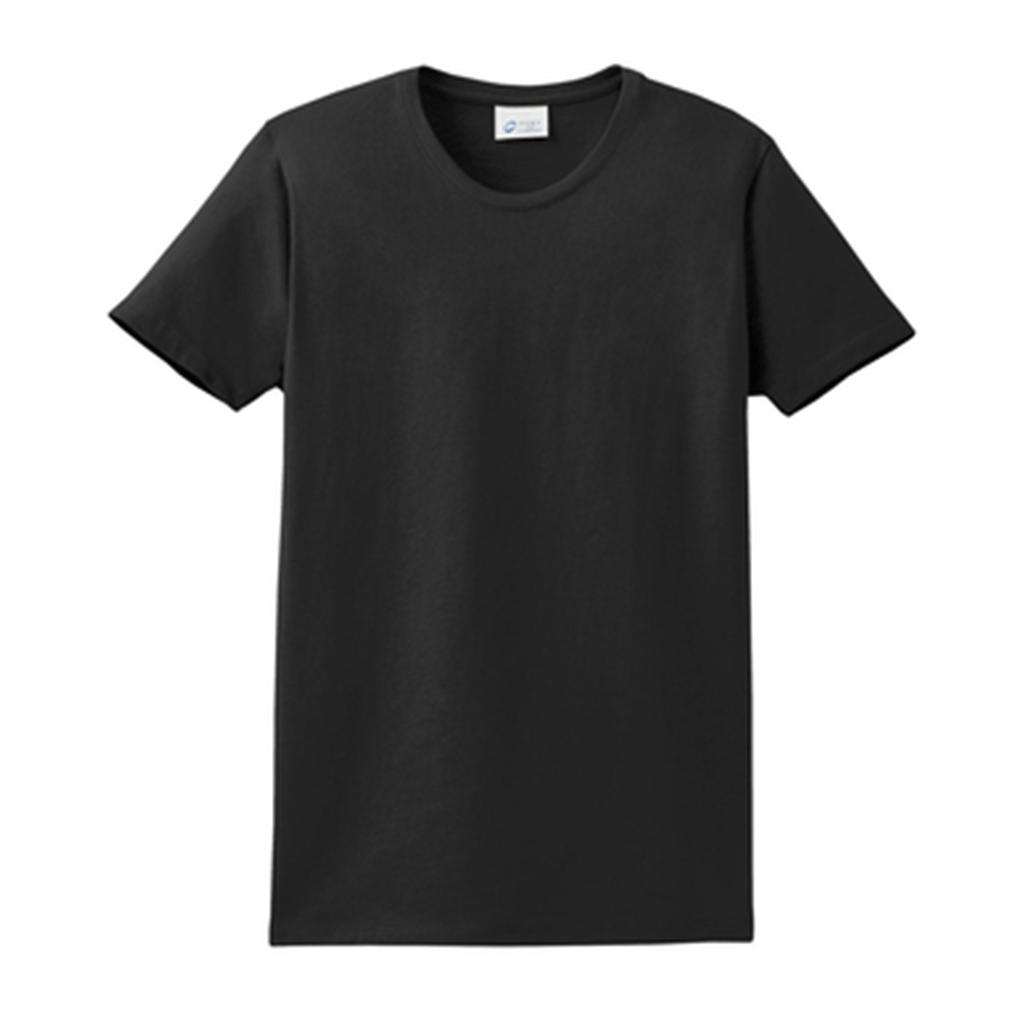 A perennial favorite, this Port & Company Women's Black Essential Tee is crafted from lightweight, soft-spun cotton. Declared as "most popular" by groups and teams across America. Features a shorter midriff and sleeves for a more feminine fit. Emblazon this crew neck tee with your company's logo or message to gift it to your clients as a corporate give-away or a summer uniform staple for your employees. Either way, it will help your company or organization stand out and create an impactful brand identity.Highlights