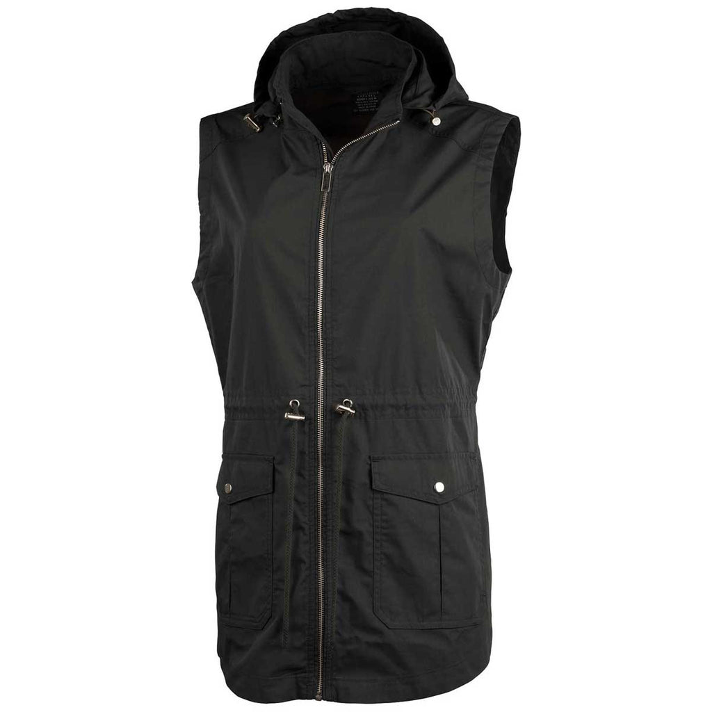 Create a fashion forward look with an embroidered Charles River Women's Black Bristol Utility Vest. This gorgeous utility vest can be custom embroidered with a company logo to use as part of unique employee wear or to give as an employee gift that is fun and functional. Easy to layer, this vest is made of a polyester, cotton blend with a drawstring waist, patch pockets, and removable hood. The drop tail hem keeps you covered, even when active. A go-to choice for weekend get-away, family time, or a day at the office. Place an order today to use these for any event or occasion, either personally or professionally.Highlights