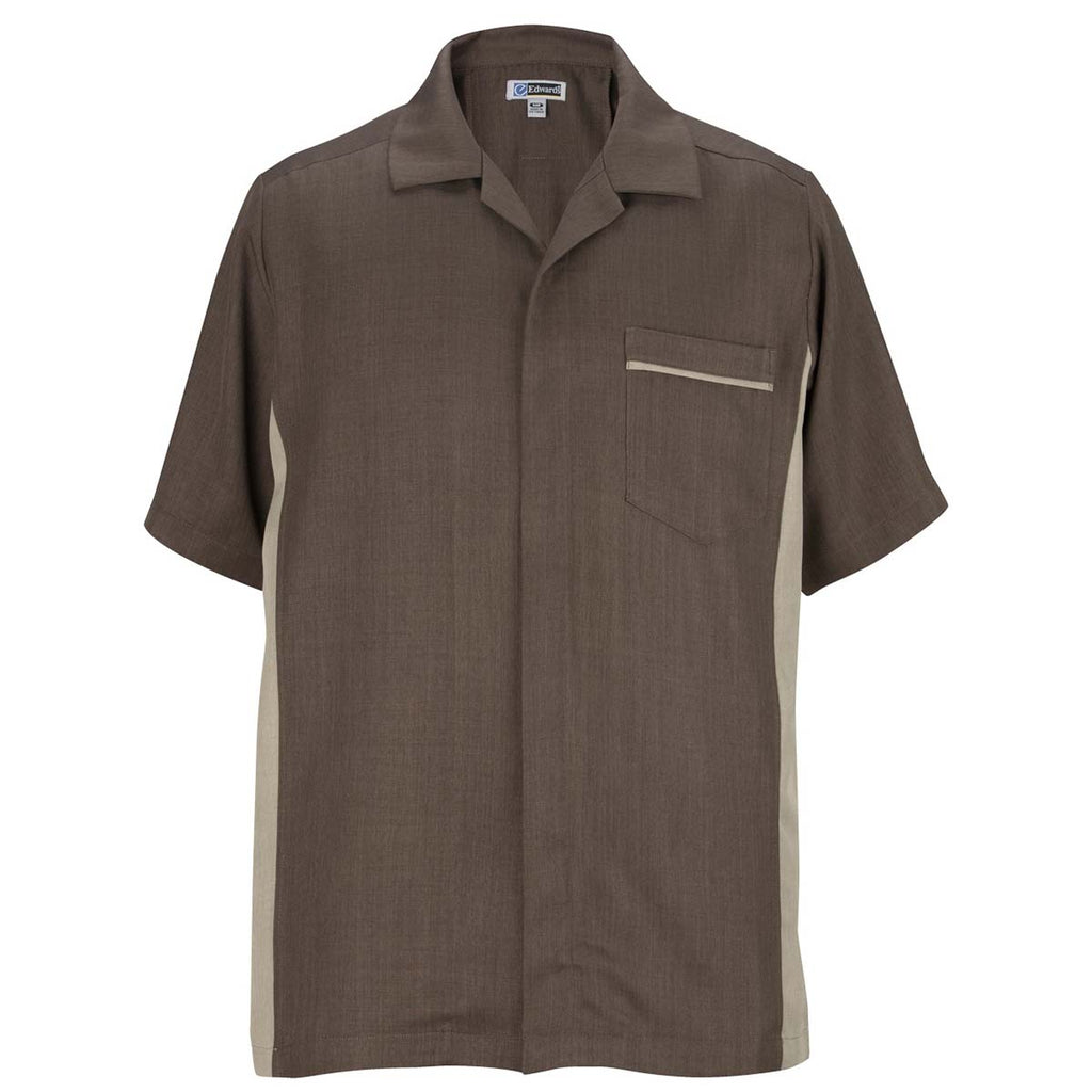 Add a custom embroidery to the Edwards Men's Chestnut Premier Service Shirt to create a look unique to your company or organization. Made of 100% polyester the contemporary styling of this comfortable to wear, easily washable shirt is unmatched. Available in six color combinations this service shirt is ideal as part of employee apparel when paired with slacks or as corporate uniforms for large organizations. The snap top button and reverse front zipper creates a tidy appearance on the short sleeve shirt with contrasting side panels and piping.Highlights