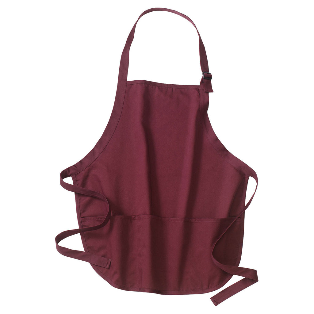 Port Authority Maroon Medium Length Apron with Pouch Pockets