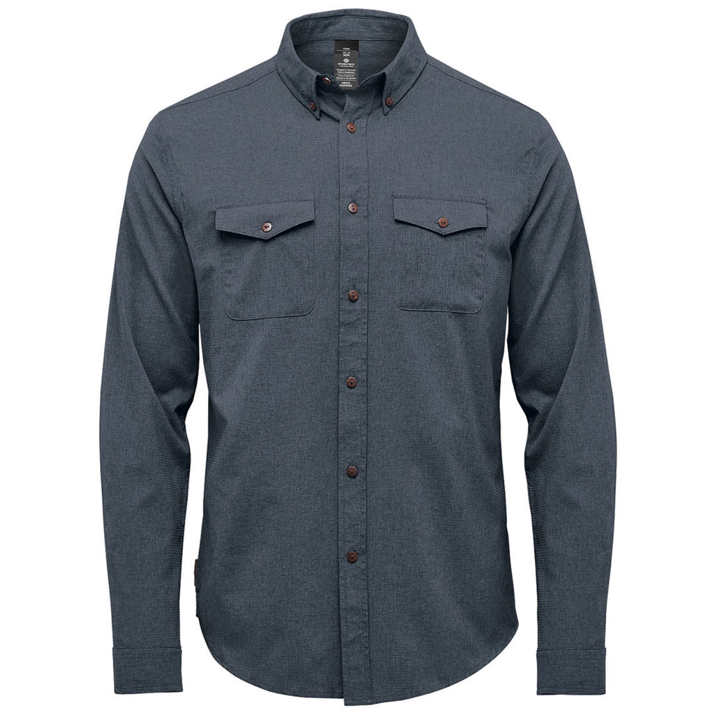 Create a corporate logo for the Stormtech Men's Dark Denim Heather Azores Quick Dry Long Sleeve Shirt for an upscale look that will keep you comfortable all day. Built for work and play, the ultra-lightweight shirt is quick to dry and contoured for a professional look all day. Wear alone or with a suit jacket to create an office-ready ensemble.Corresponding Women's Style: Stormtech Women's Dark Denim Heather Azores Quick Dry Long Sleeve Shirt