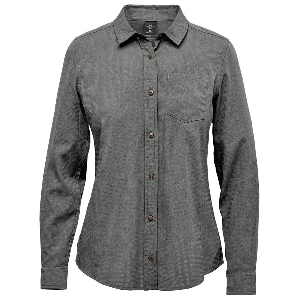 Stormtech Women's Heather Grey Azores Quick Dry Long Sleeve Shirt with a corporate logo is the ideal way to enjoy an ultra-lightweight look that works in the professional and home worlds. The classic button-up front is contoured for comfort and stretchy for all-day wear. It is perfect for servers or can be dressed up for office wear.Corresponding Men's Style: Stormtech Men's Heather Grey Azores Quick Dry Long Sleeve Shirt