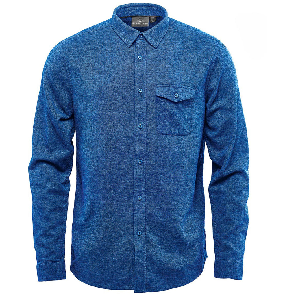 Keep it casual by adding your company's custom logo or design to the Stormtech Men's Indigo Dockyard Long Sleeve Twill Shirt. Available in a range of attractive color options, it's made from a highly durable brushed twill fabric. Design details like the single chest pocket and curved hemline keep it on the cutting-edge of current trends.