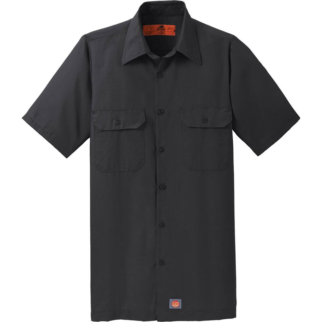 It may look casual and even office-ready, but where it counts, this Red Kap Men's Black Short Sleeve Solid Ripstop Shirt is all blue collar. And that's good news, because your work space isn't always computers and spreadsheets. Sometimes it means getting your hands dirty. With the lightweight poly/cotton poplin ripstop fabric you see here, you'll have a dress shirt that does more than just look good-it also offers garage-ready function at a moment's notice. Simply add your custom logo to this shirt, and you'll add your brand to a blue-collar shirt that works as hard as you do.Highlights