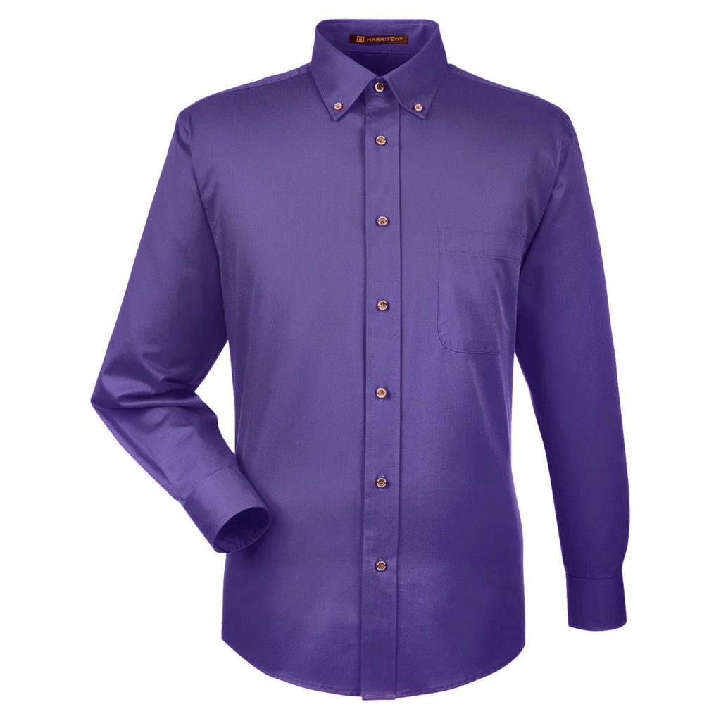 Harriton Men's Team Purple Easy Blend Long-Sleeve Twill Shirt with Stain-Release