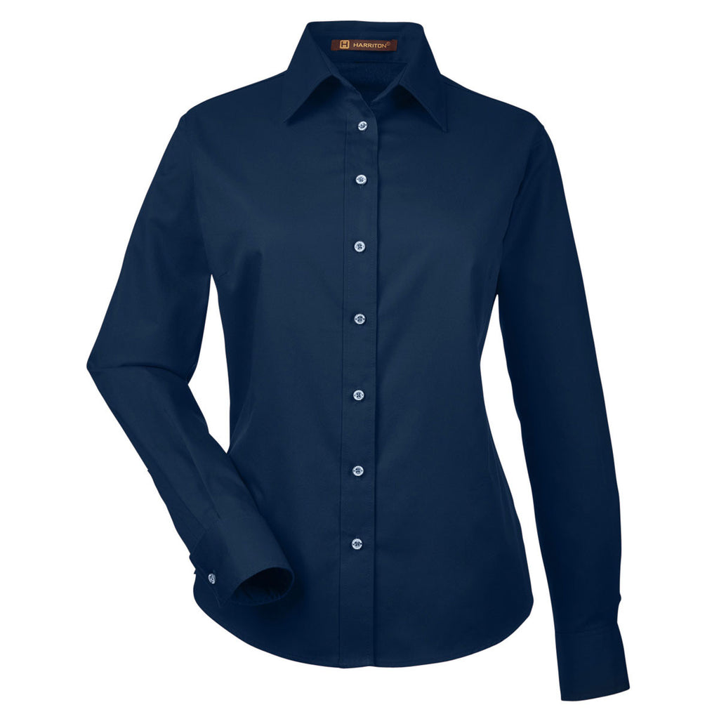 Harriton Women's Navy Easy Blend Long-Sleeve Twill Shirt with Stain-Release