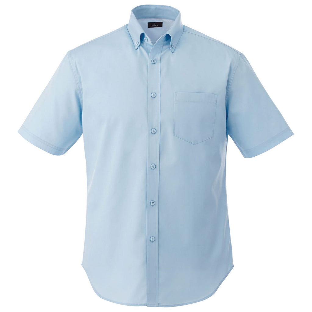 The Elevate Men's Frost Blue Stirling Short Sleeve Shirt with your custom logo will make any man look sharp and classy. Its classic look never goes out of style. Give your customers a gift they will use for years to come. It features a left-chest pocket and center-back box pleat. It comes in many colors, giving you many options to choose from to fit your brand. Your employees will gladly wear this classic shirt, so make sure to include it in your next giveaway! It is ideal for warm summer days when they have to stay cool. Whether they are going to work or driving their kids to school, they will advertise your brand.Corresponding Women's Style: Elevate Women's Frost Blue Stirling Short Sleeve Shirt