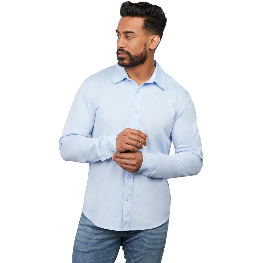 Elevate Men's Frost Blue TATRA Eco Knit Long Sleeve Button Up Shirt