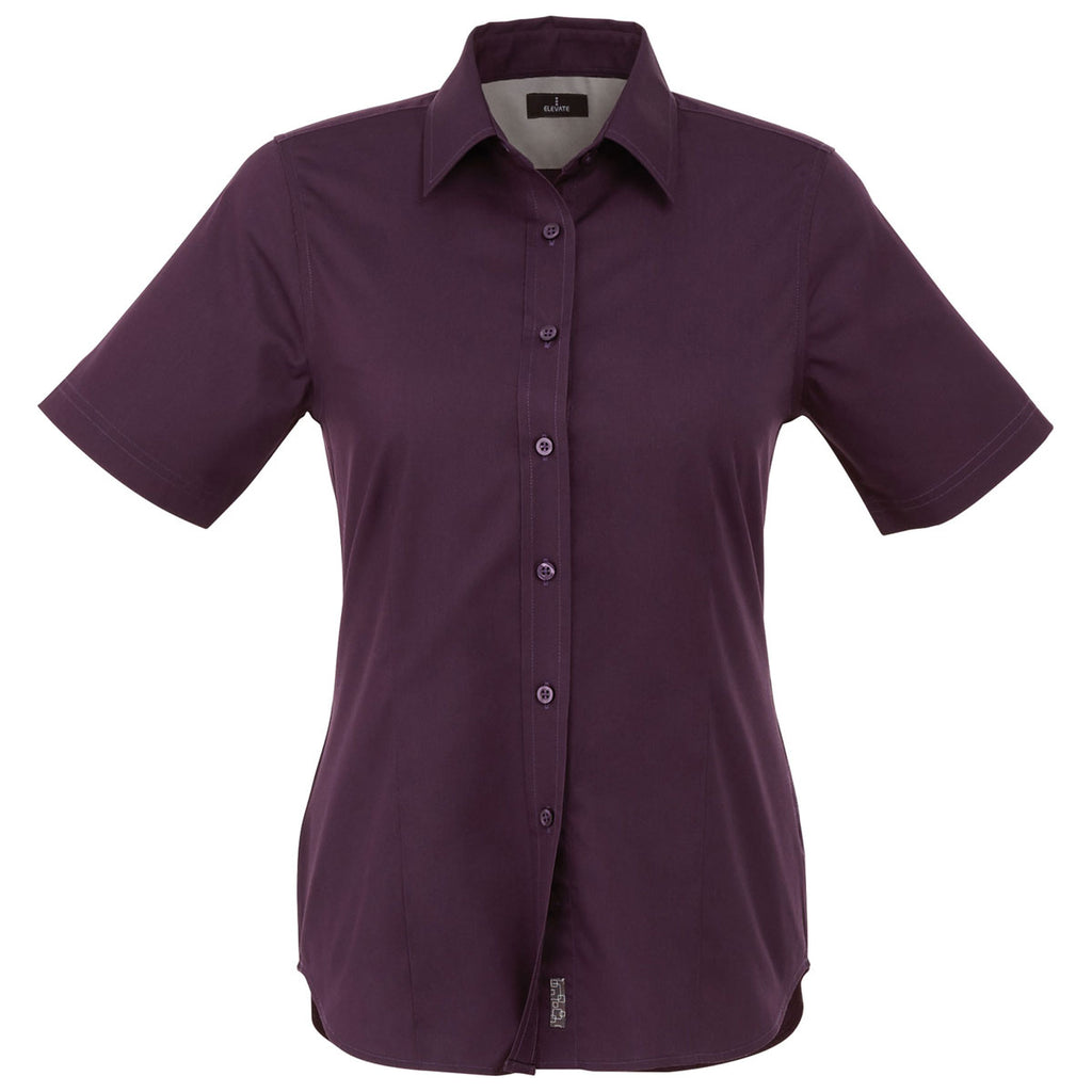 Every woman needs a classic work shirt in her closet, so give your female employees the Elevate Women's Dark Plum Stirling Short Sleeve Shirt with your custom logo on it. It has shaped seams and a tapered waist for a more flattering fit. It is comfortable and looks sharp, so your employees will appreciate this useful gift. It has a decoration-friendly design and is available in several colors. Include this shirt in your corporate giveaway and put a smile on your employees' faces. They will proudly wear it and subtly advertise your brand wherever they go. Make your logo shine on the Elevate Women's Dark Plum Stirling Short Sleeve Shirt.Corresponding Men's Style: Elevate Men's Dark Plum Stirling Short Sleeve Shirt