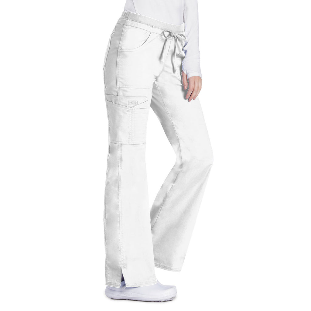 Cherokee Women's White Workwear Premium Core Stretch Jr. Fit Low-Rise Drawstring Cargo Pant