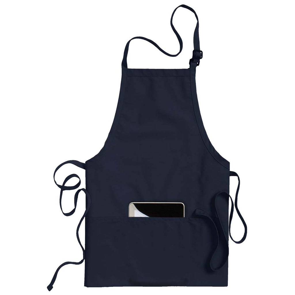 Who doesn't need or want a custom Edwards Navy 3-Pocket Bib Apron? This simple, classic apron can be embroidered with your company logo or corporate brand as a great way to personalize a uniform or employee apparel for those working in the food industry in some form or fashion. Made of a polyester cotton twill blend this 3- pocket bib apron can be machine washed as needed. Add your custom logo to the slide adjustable bib apron with long ties for front and back closure. The one size fits most style means both men and women can comfortably wear this apron while working.Highlights