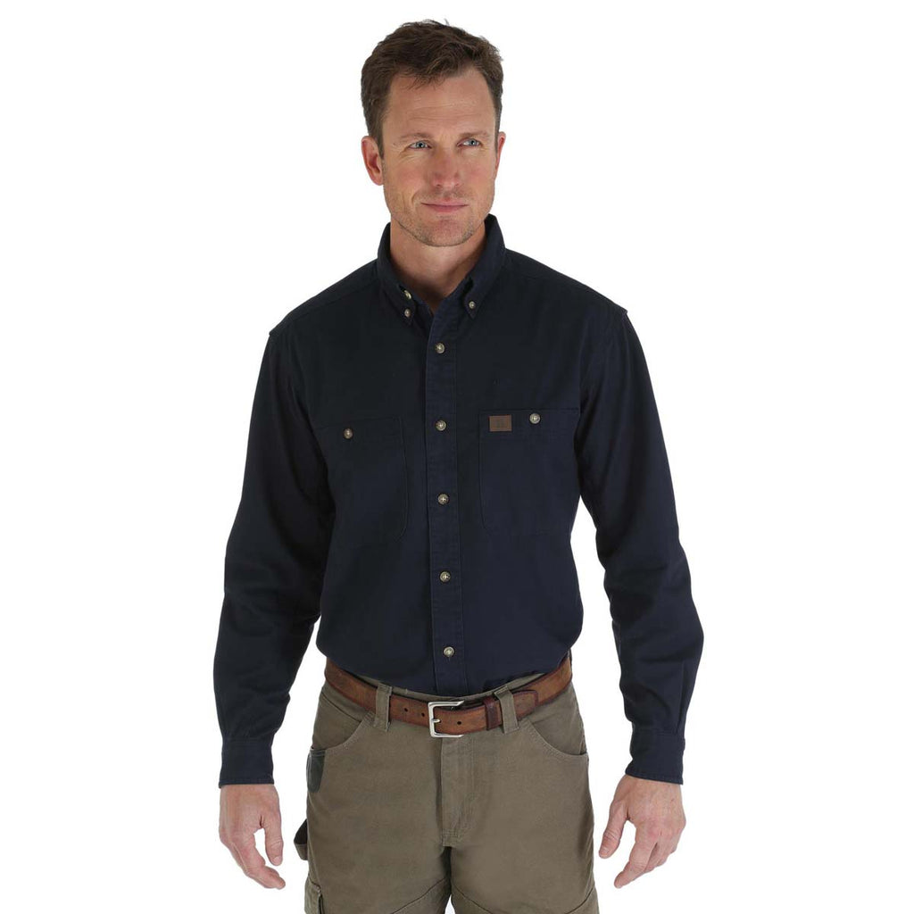 Wrangler Men's Navy Riggs Workwear Long Sleeve Button Down Solid Twill Work Shirt