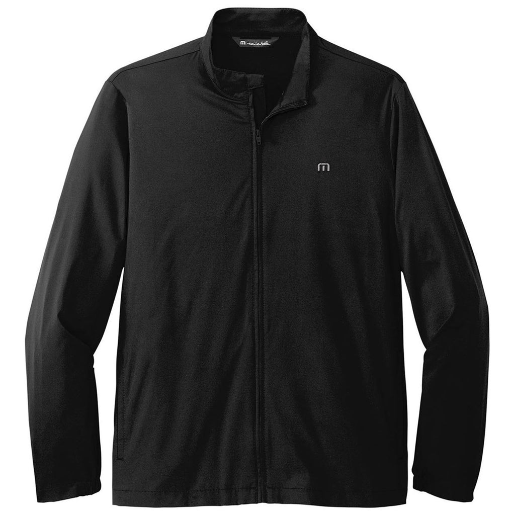 Choose your embroidery for the TravisMathew Men's Black Surfside Full-Zip Jacket for a custom look that easily goes from the golf course to the office. Made of a lightweight nylon, polyester, and spandex blend this jacket is made for comfort and convenience. Created with 4-way stretch for the ultimate in comfort with open hand pockets and cuffs, this jacket can serve as part of employee apparel with a company logo or as a gift for lucky receivers. Easy to layer with a full zip front with reverse coil zipper, this is a must have for everyone from the busy exec to the low man in the corporation.