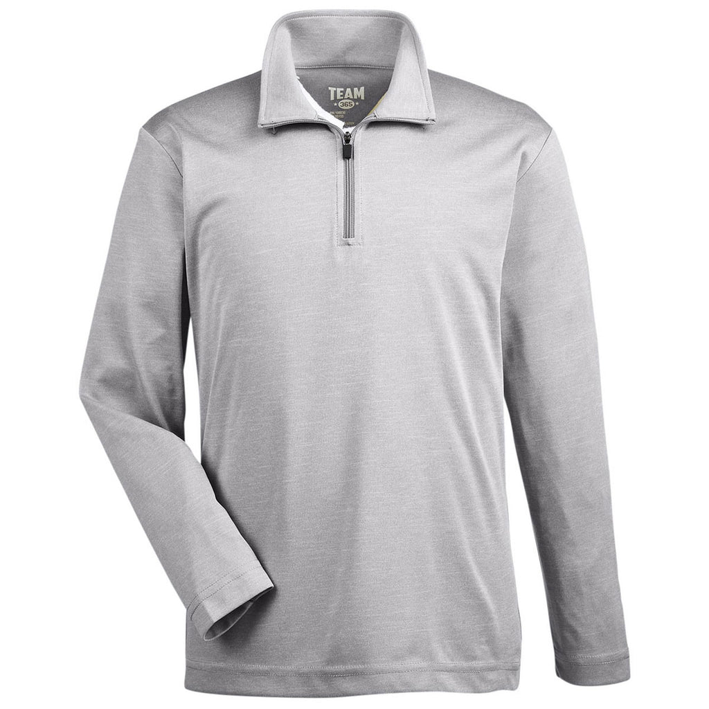 Stay comfortable in a custom Team 365 Youth Athletic Heather Zone Sonic Heather Performance Quarter-Zip. Perfect for the school year, this lightweight 100% polyester sonic heather interlock can be custom embroidered with the design of your choice. Add a school logo as part of a uniform or a team name to use as warm-up gear with other logoed apparel. The moisture wicking and UV protection performance keep kids feeling great as they play in the big game or enjoy time in the park with friends. The center front zip allows for easy layering on this quarter-zip that will carry your embroidery with pride.Highlights