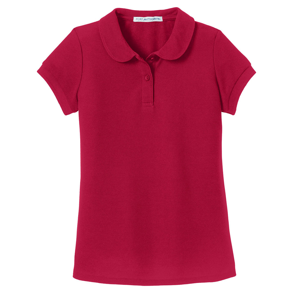 Port Authority Girls Red Silk Touch Peter Pan Collar Polo