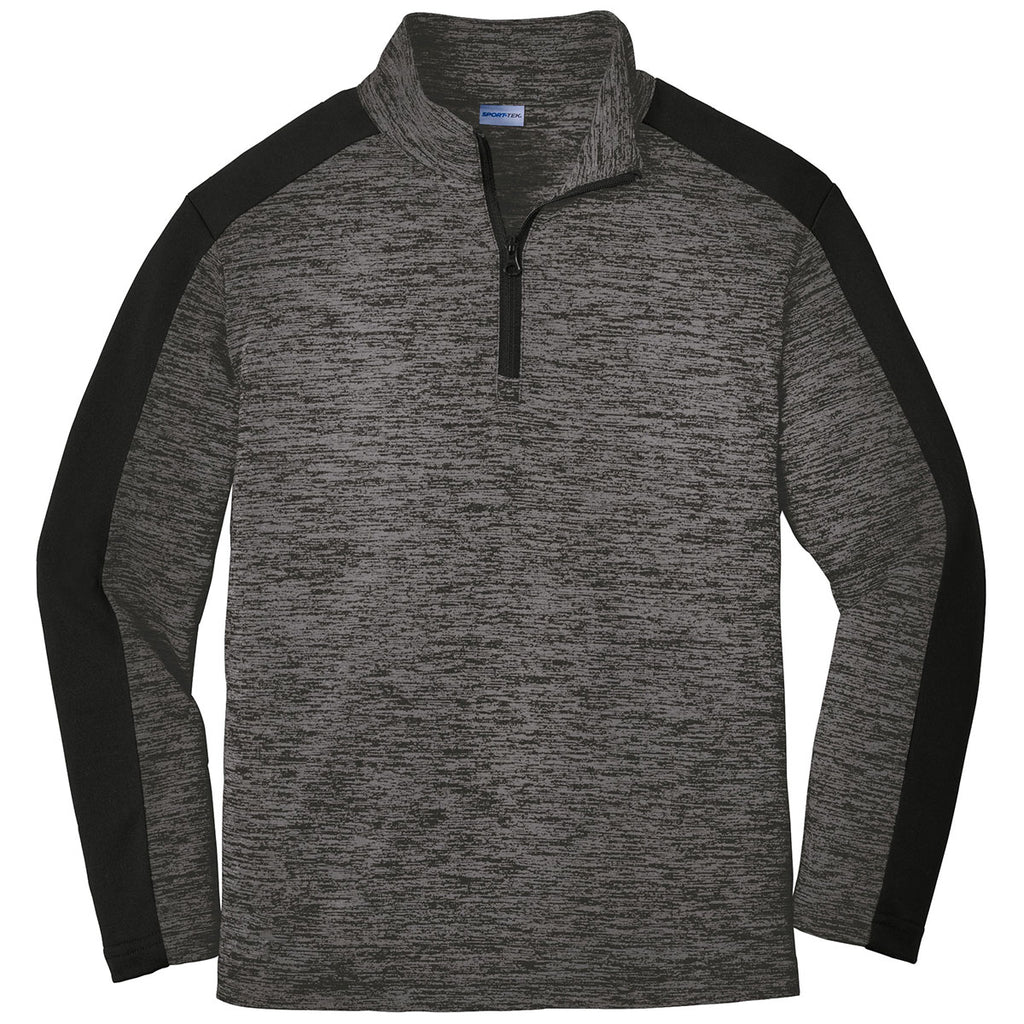 Sport-Tek Youth Grey-Black Electric/Black PosiCharge Electric Heather Colorblock 1/4-Zip Pullover