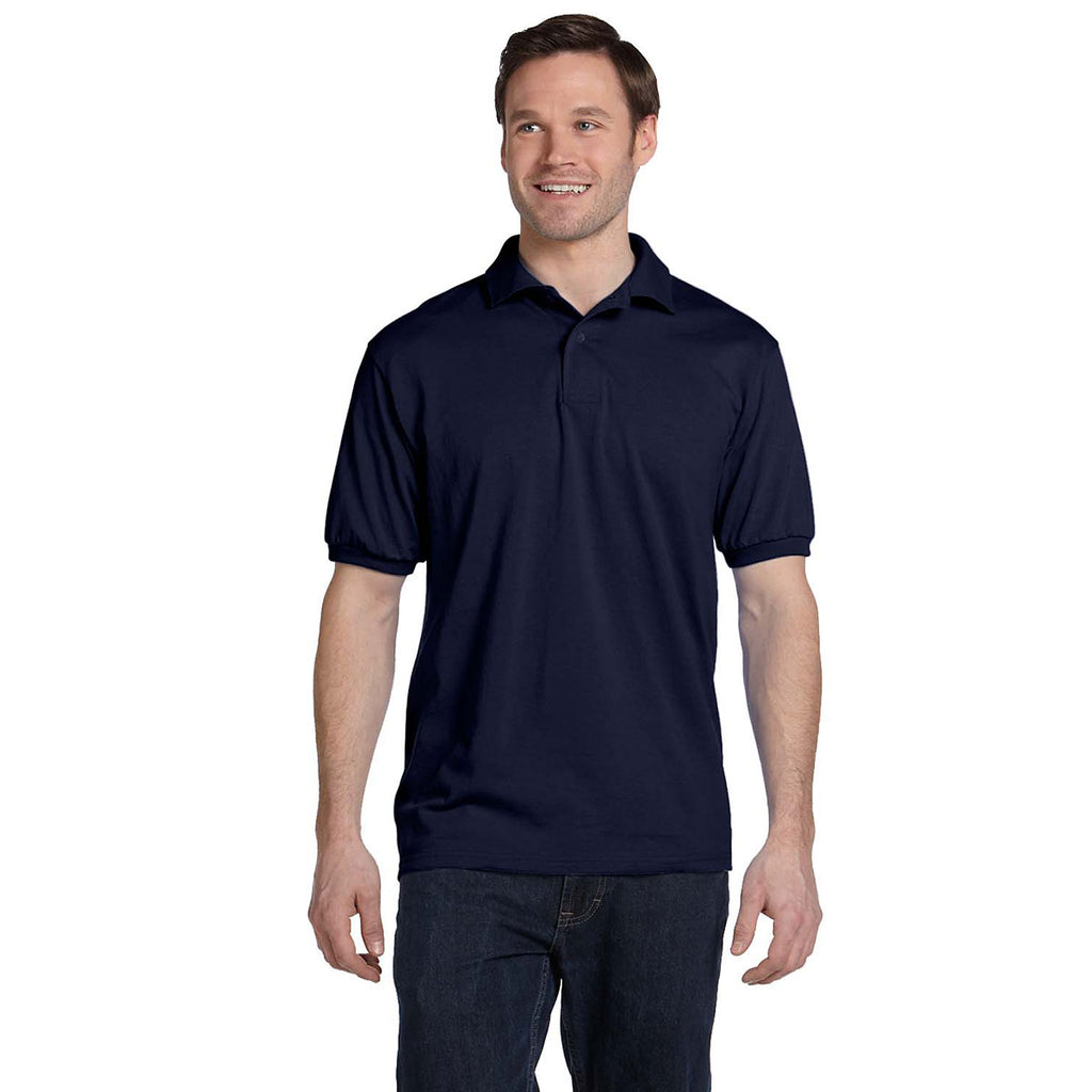 Hanes Men's Navy 5.2 oz. 50/50 EcoSmart Jersey Knit Polo