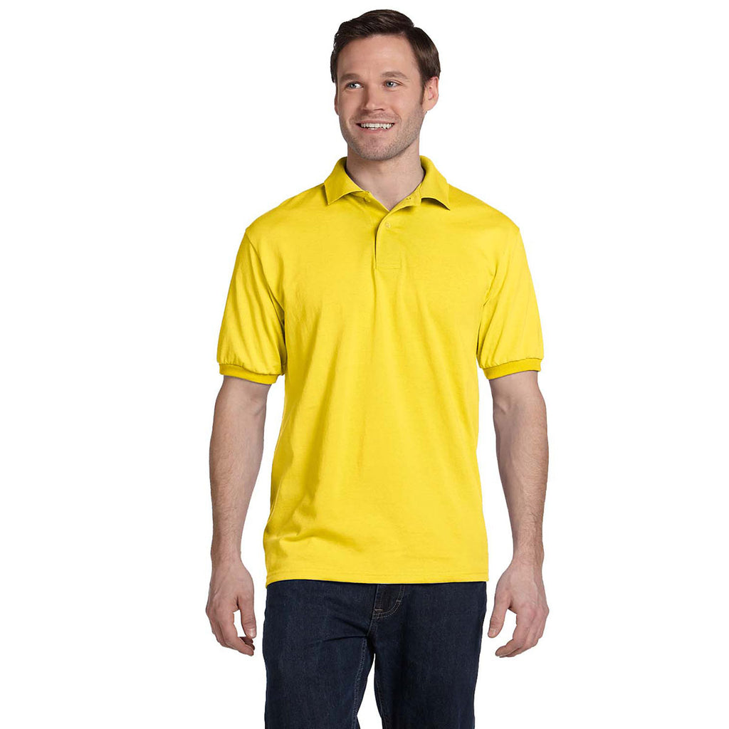 Hanes Men's Yellow 5.2 oz. 50/50 EcoSmart Jersey Knit Polo