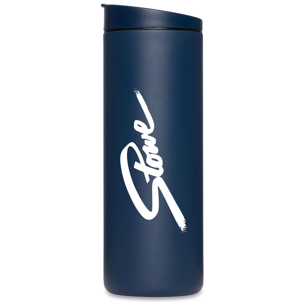 Turn the omnipresent water bottle into instant advertising with the MiiR Tidal Blue Vacuum Insulated Travel Tumbler - 16 Oz. It is perfect for employee giveaways, tradeshows, and new employee welcome gifts. It keeps drinks cold up to 24 hours and keeps your company logo out front.