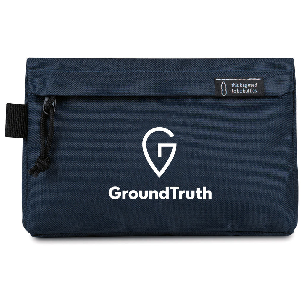 - A modern and sustainable update to a classic pouch using recycled fabric and webbing made from plastic bottles