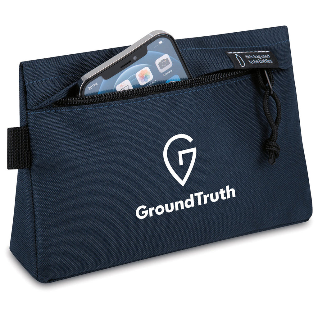 Gemline Navy Renew rPET Zippered Pouch with custom logo is modern and sustainable while remaining perfect for daily use. This small pouch style bag is perfect for holding necessary items when out for a jog or to run a quick errand when you do not need much before returning home. Add a custom logo to use as an event giveaway or draw attention at a trade show with this small, but useful pouch. Great as part of a new employee welcome package or to keep important documents organized for business travel. Order today to make sure these pouches are ready to meet whatever needs may arise.