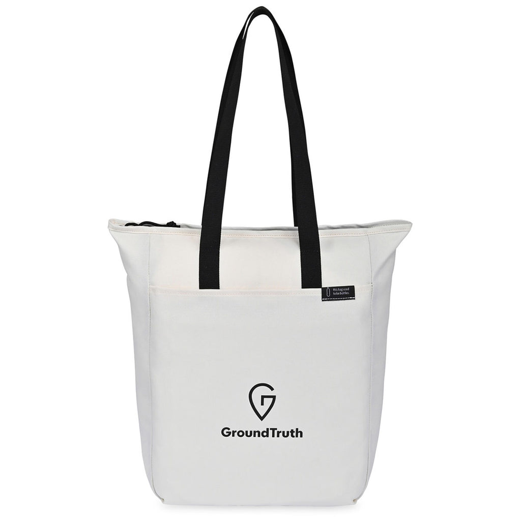 Modern and sustainable, the branded Gemline Cream Renew rPET Zippered Tote is a must have for those who like to entertain or maintain a busy schedule. The tote is made from recycled fabric with a front slash pocket for accessories, zippered opening to a large, spacious main compartment, and interior zippered pockets. Great as a container for a new employee welcome gift or to use as a display item at trade shows. Shoulder straps add to the convenience in this kid friendly tote that is ready to be filled with all you need for your busy schedule. Place an order today, these will go fast.