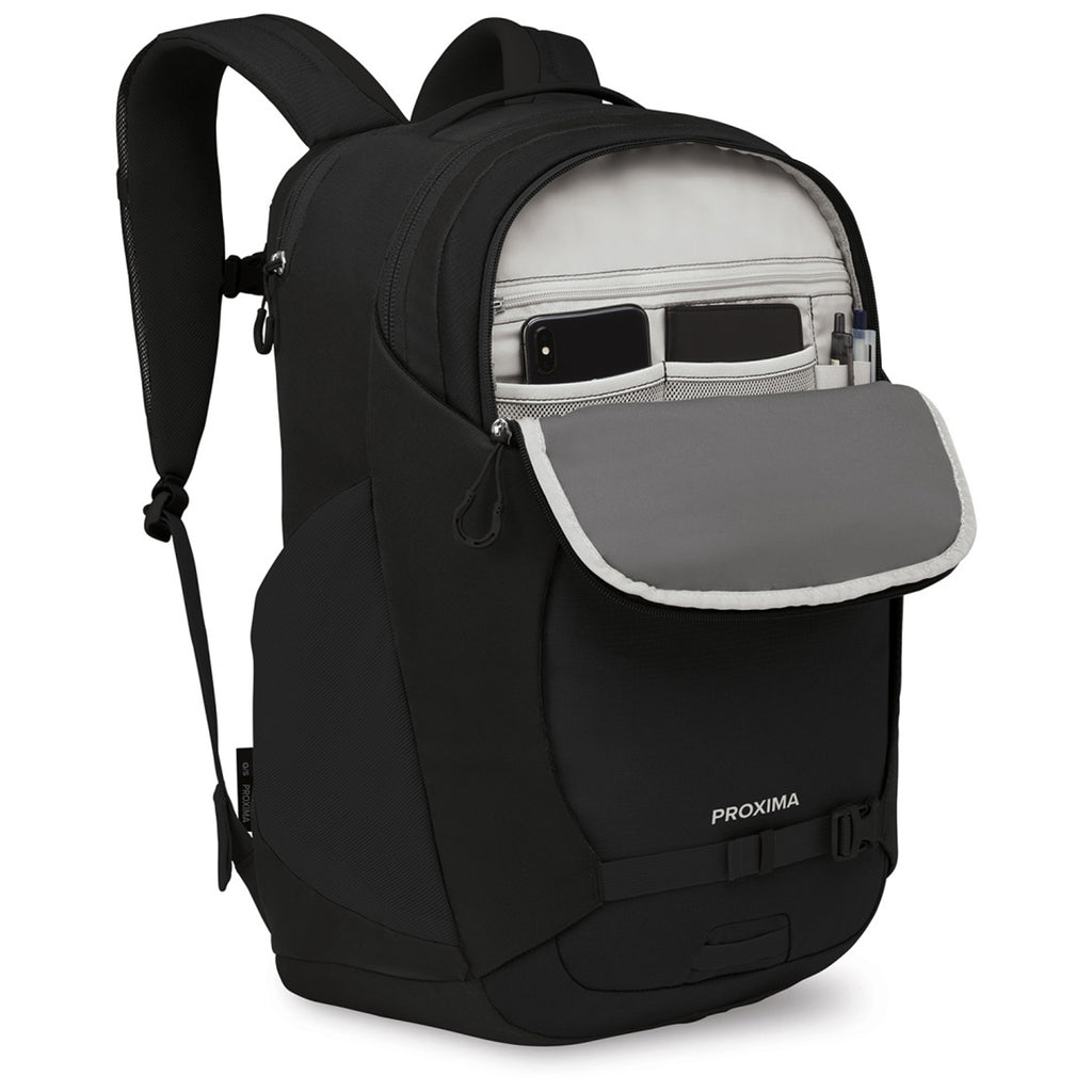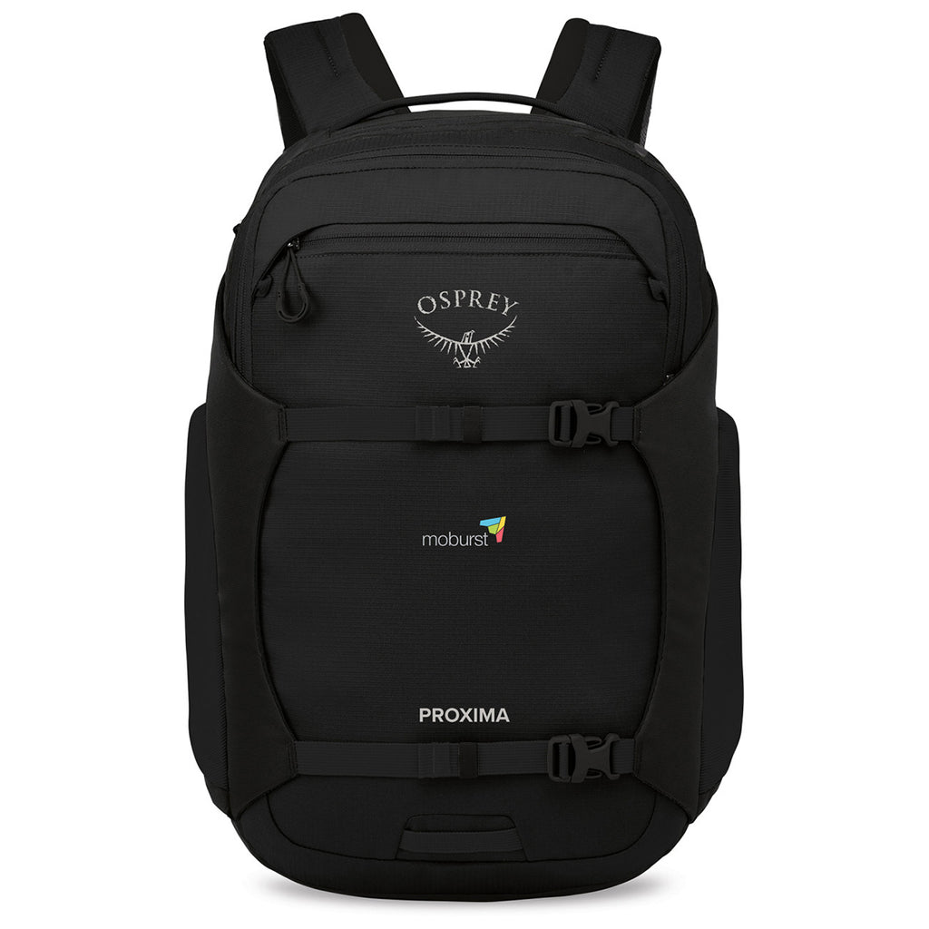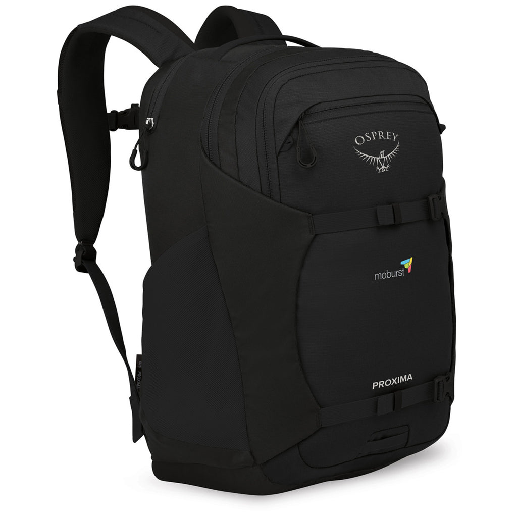 The Osprey Black Proxima is an excellent way to make sure your company's custom logo is always easy to spot. Add your brand's personalized design to this backpack to create a gift or giveaway item that students, professionals, or athletes of all ages will want to get their hands on.
