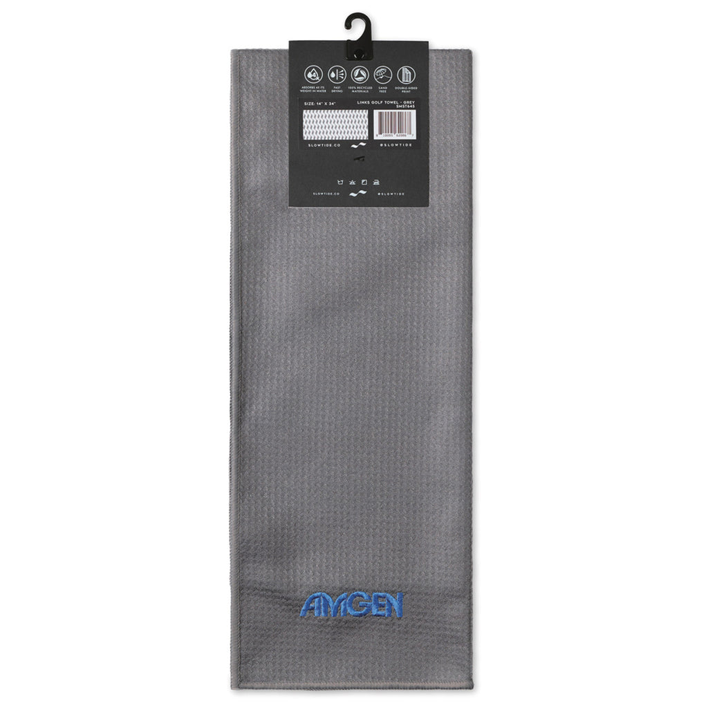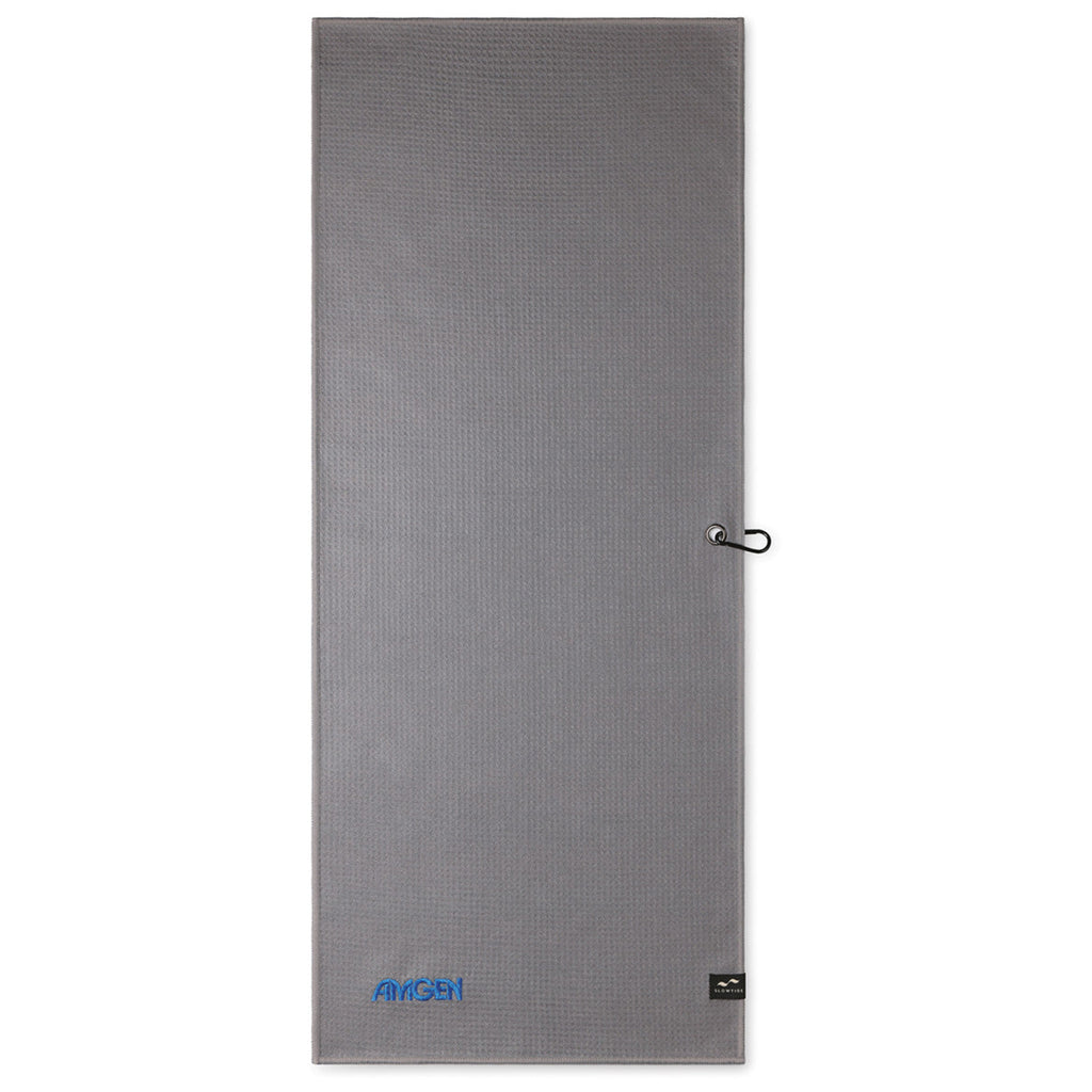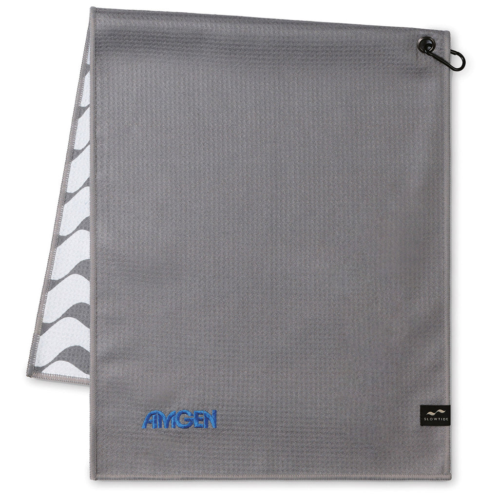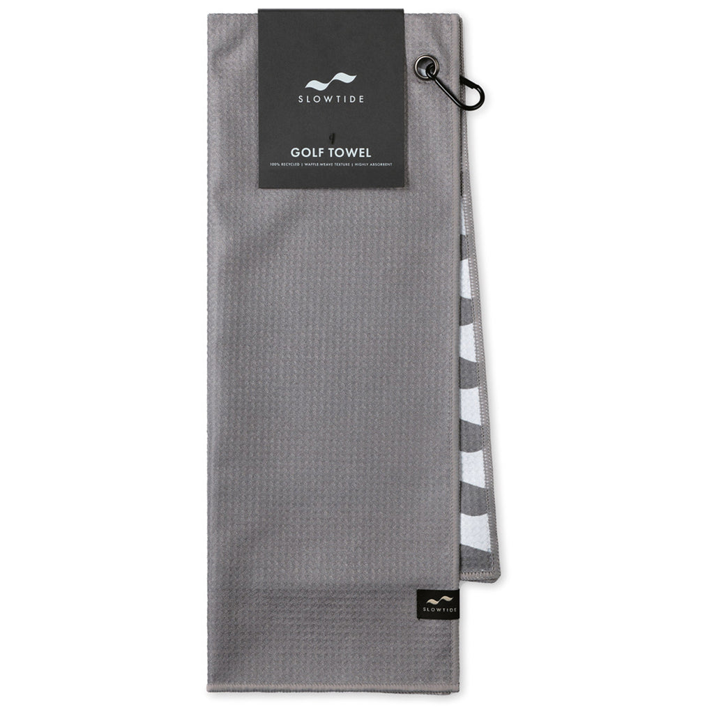 Your brand's personalized logo will always be highly visible on the golf course when it's added to the Slowtide Cool Grey Links Golf Towel. Great for tradeshow giveaways or corporate golf outings, it measures 39" long by 14" wide and features a convenient metal carabiner clip so it can be attached to any golf bag.