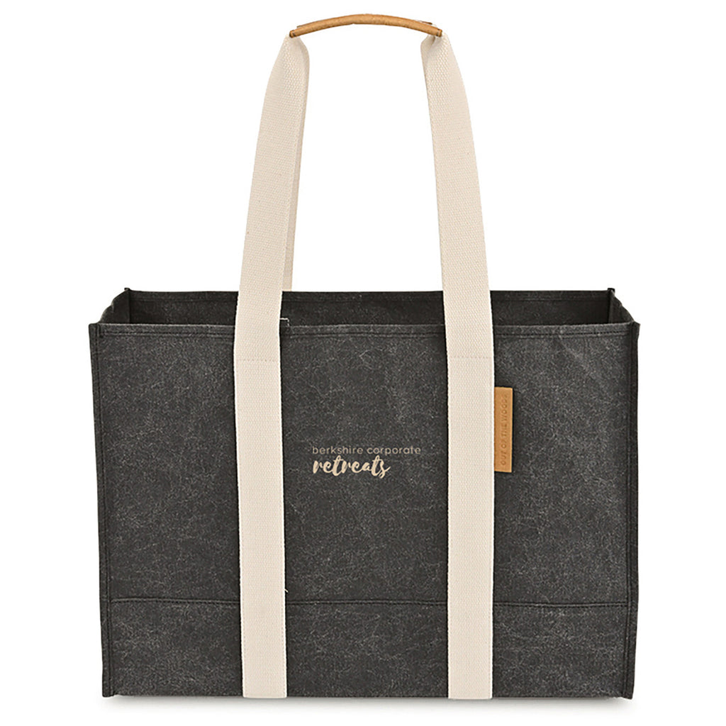 The Out of The Woods Ebony Large Boxy Tote is made from a special Supernatural Paper material, making it a great pick for eco-friendly brands who want to add their company's custom logo or design to sustainable promotional items. A flat base makes it great for taking books, papers, or documents with you when you need to hit the road.
