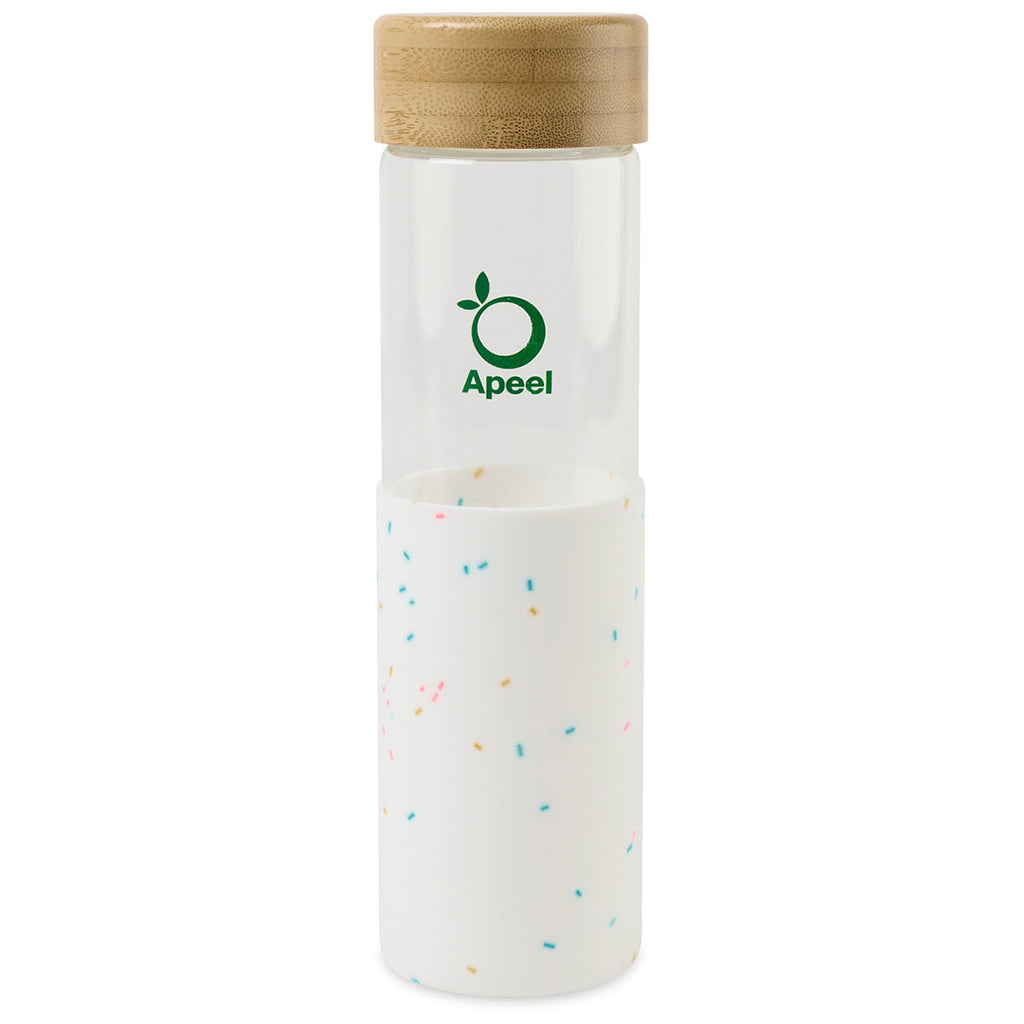 There's something timeless about the Aviana Confetti Journey Glass Bottle - 20 Oz. Perfect for anyone with a minimalist aesthetic, your company's custom logo will look chic when added to the exterior of this portable beverage container. Features like the bamboo lid and silicone sleeve take it to the next level.