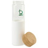 There's something timeless about the Aviana White Journey Glass Bottle - 20 Oz. Perfect for anyone with a minimalist aesthetic, your company's custom logo will look chic when added to the exterior of this portable beverage container. Features like the bamboo lid and silicone sleeve take it to the next level.