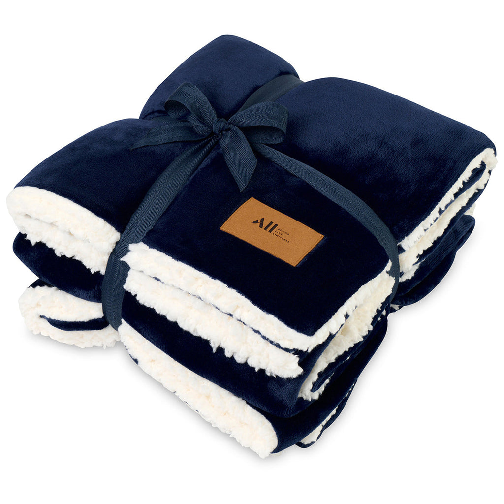 Stay warm with a custom Gemline Navy Mink Sherpa Blanket that can be given as a gift or shared in your shop or store. The super soft blanket has a sherpa lined back and micro-mink front for a beautiful look and comfy feel. Great for cuddling on the couch to watch a movie or keeping warm around the bonfire.