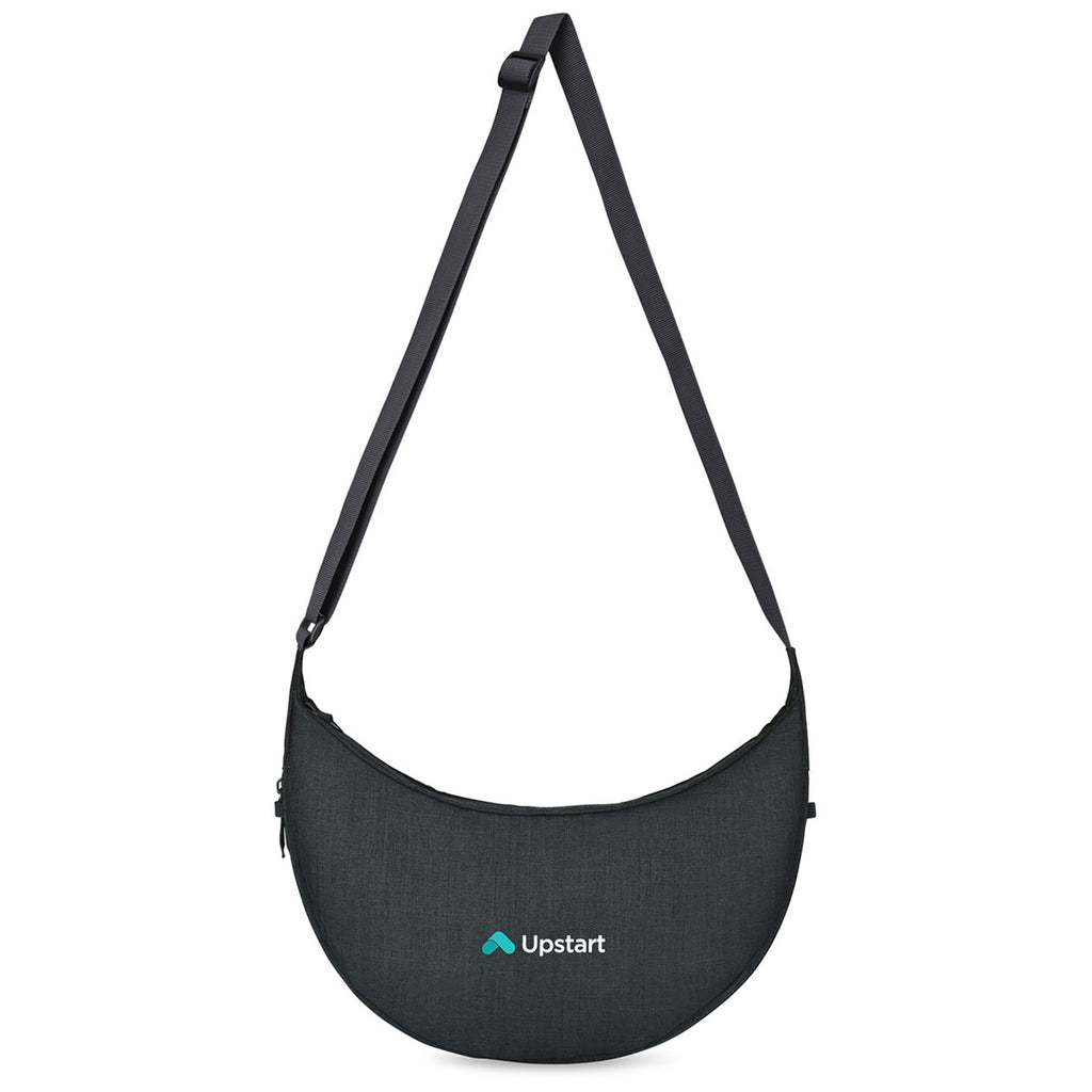 Enjoy your day with a custom Gemline Black Sand Alba Sling Bag. This sling bag is perfect for travel days when only a few items are needed to enjoy. The expansion gusset on this bag doubles the capacity inside, and interior webbed sections lock to keep items organized and separate. Ideal for amusement parks, road trips, and days out with friends.