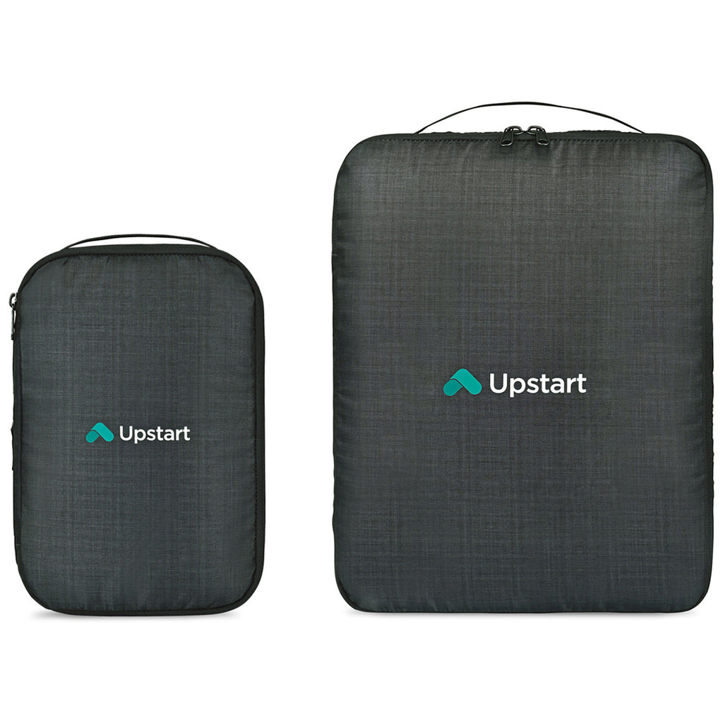 Enjoy a corporate logo on the Gemline Black Sand Alba Compression Packing Cube Set, and get ready for your next adventure. Packing can be a pain, but with these compression cubes, you easily eliminate the bulk. The ultra-light materials are easy to use, and this set comes with a large and small cube. Great for travel or moving.