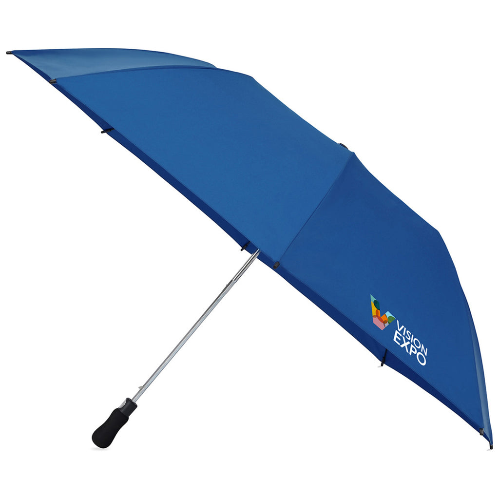 Rain and sun are no match for the custom Elements Royal Blue 58" Recycled Auto Open Travel Folding Umbrella. Made from recycled materials, this umbrella comes with a carry pouch and strap, opening and closing with a single button click. Perfect for travel, commuting, or keeping at hand while going about your day.