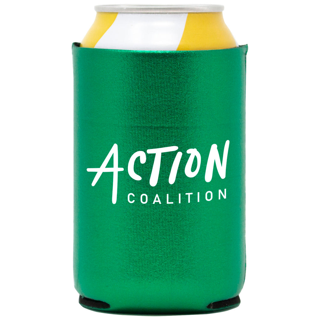Best Promotions USA Metallic Green Metallic Neoprene Collapsible Coolie with a custom logo is a fun and festive way to celebrate with swag and brand recognition. Get creative with this metallic coolie and add your wedding date, event address, or bold brand name to share these with guests or potential clients. Place your order now; these will go fast.The minimum order for this product is 250 pieces.
