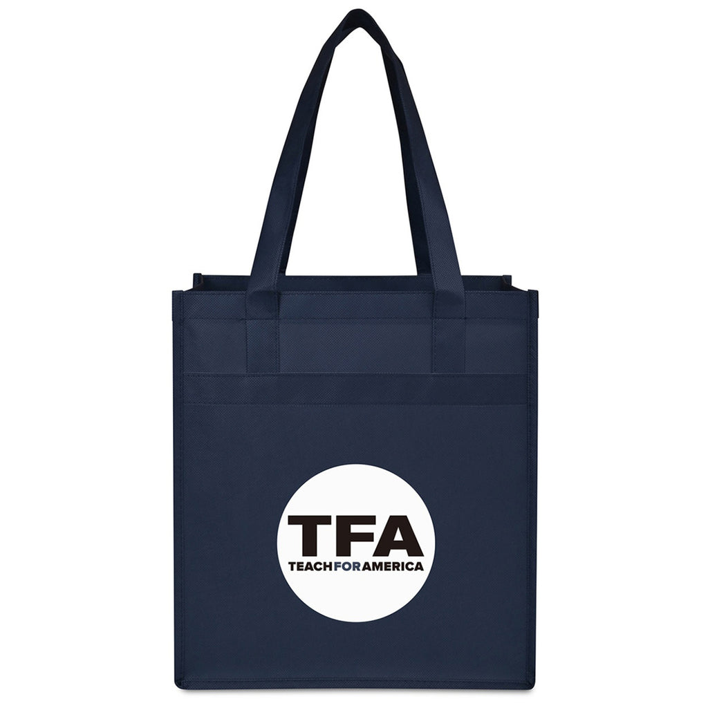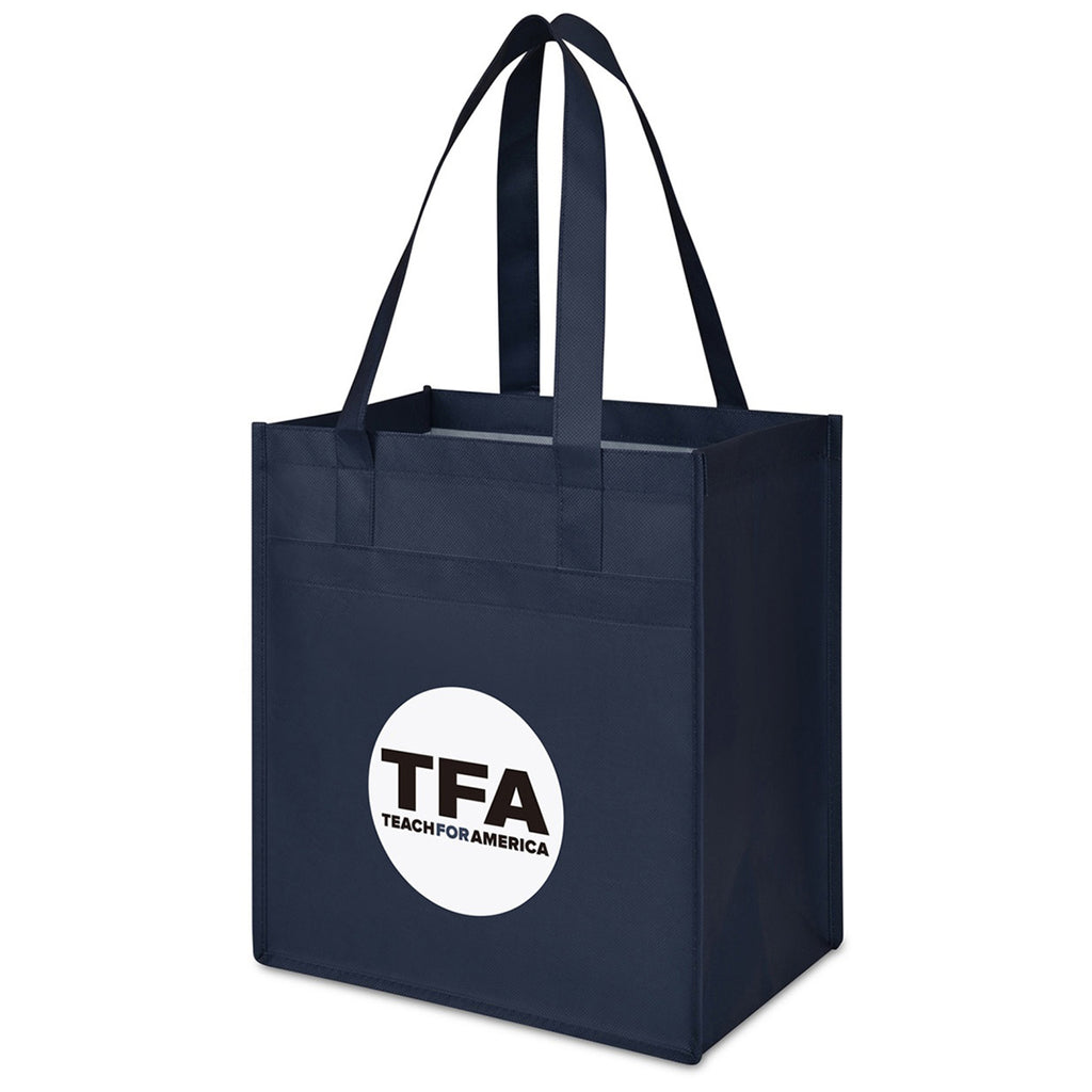 Be eco-friendly with a custom logoed Gemline Navy Arlo rPET Deluxe Shopper. This recycled shopper tote is designed for everyday adventures with a splash of color. The reusable shopping bag is perfect for groceries, with a large main compartment and 24-inch shoulder straps for easy carrying. Order several colors to provide options.