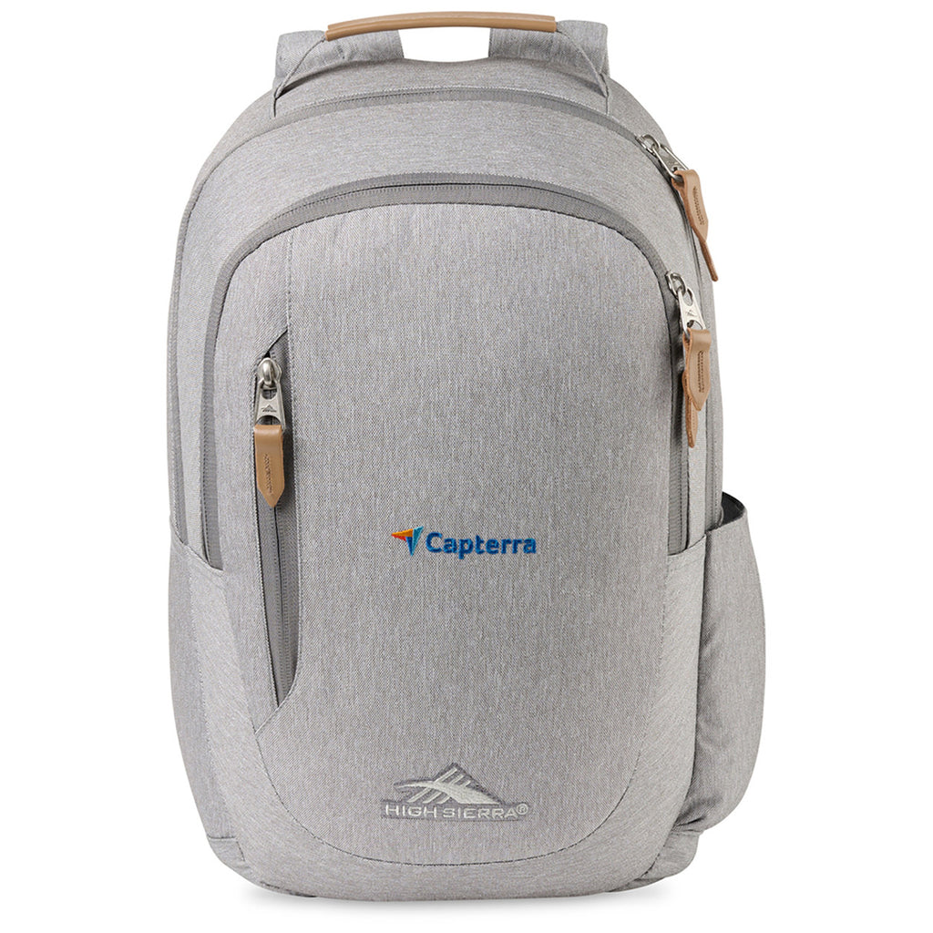 Try a corporate logo for the High Sierra Light Grey Heather Haidan Laptop Backpack to give as welcome gifts, incentives, or promotional items for the office. The large capacity main compartment is great for a smaller laptop, tablet, or files and the outside zippered pockets can keep smaller tech or items organized.