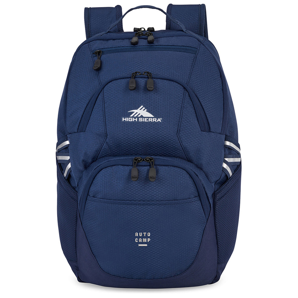 High Sierra True Navy Swoop SG Laptop Backpack with a custom logo is perfect for travel, school, or work with a padded laptop pocket that fits up to a 17" laptop and a separate tablet sleeve. A separate fleece lined pocket is great for sunglasses and phones to help you stay organized.